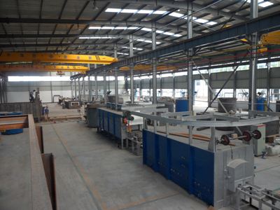 臺車式退火爐鋼 結(jié)構(gòu)主要包括爐殼支撐框架和驅(qū)動設(shè)備支撐框架(平臺鋼結(jié)構(gòu))。考慮到爐殼潛在的熱脹冷縮因素,各段爐殼支撐框架與平臺鋼結(jié)構(gòu)采川相互獨立結(jié)構(gòu)。各爐段的底 輥室先安裝就位,以自己四角立柱為基準完成4個基準立柱焊接;再焊接左右兩個整體端板.而操作側(cè)和傳..